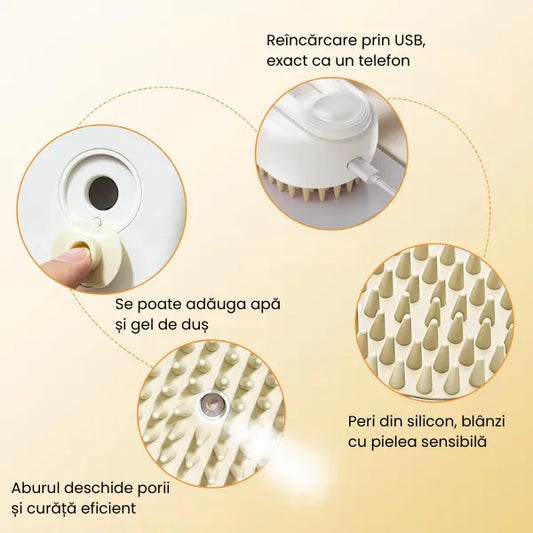 OFERTĂ 1+1 GRATIS: Perie Cu Abur Pentru Animale - Masaj și Curățare, Peri din Silicon, USB