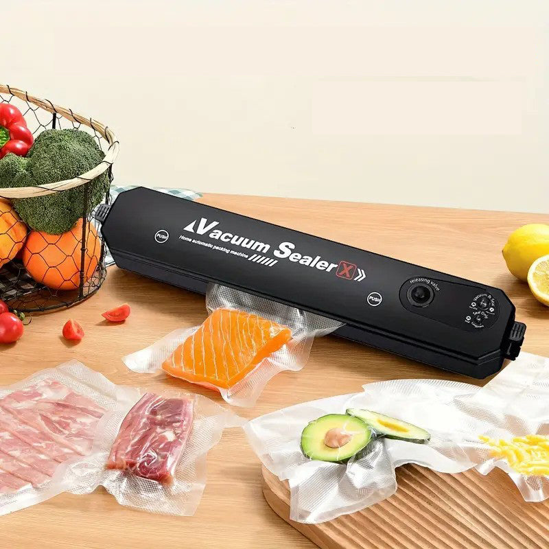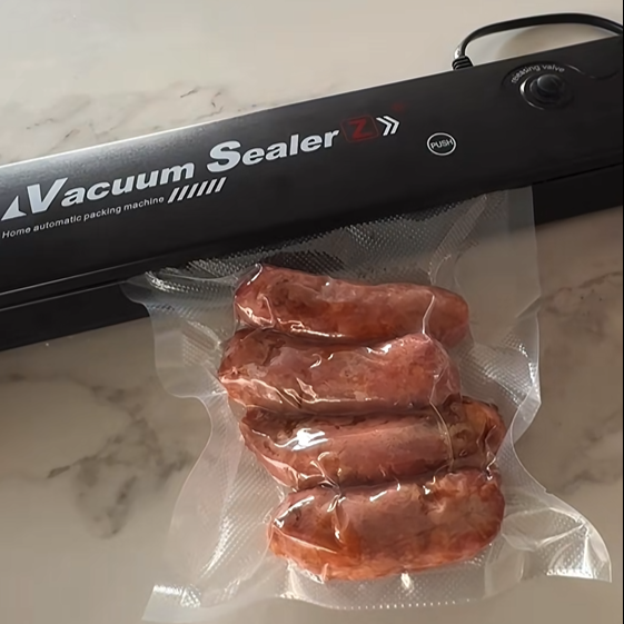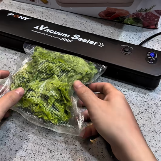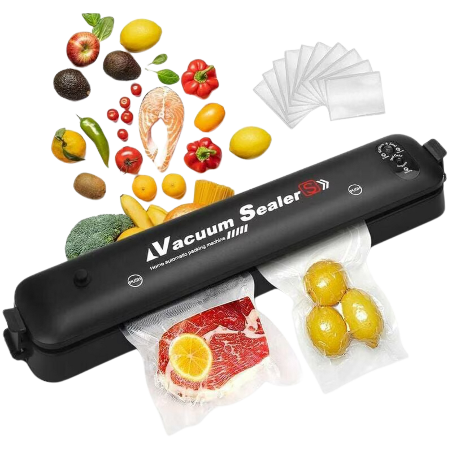 Este ușor de folosit, compact și funcționează atât pentru alimente umede, cât și uscate. Cu o simplă apăsare de buton, sigilezi perfect carnea, legumele, fructele sau resturile din frigider – păstrând gustul și prospețimea de până la 5 ori mai mult.